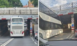Një autobus kosovar ngeci nën një nënkalim në Zagreb, mediat kroate publikojnë pamjet