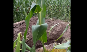 Në mes të një are të mbjellur me misër të hënën në fshatin Baicë të