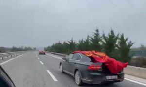 Vetura nga Kosova me flamujt kuq e zi dhe me tri germat “UÇK” shihen në