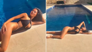 Nicole Scherzinger tërheq vëmendjen me format fizike në bikini pranë pishinës