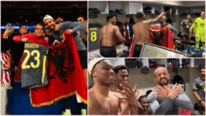 Festa e çmendur në zhveshtoren e Lille ku Zhergrova feston me bashkëlojtarët me flamur kuqezi dhe plis në kokë