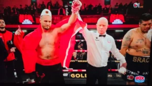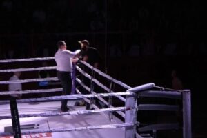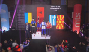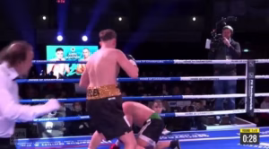 Boksieri shqiptar hedh serbin tri herë në tapet, detyron gjyqtarin të mbyllë ndeshjen në raundin e parë