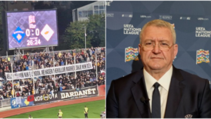Dardanët ‘godasin’ Armand Dukën me transparent në ndeshjen Kosovë-Qipro