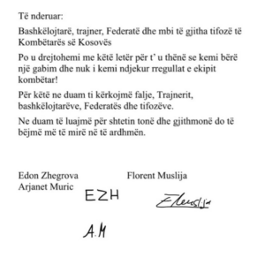 Zhegrova, Muslija e Muric i kërkojnë zyrtarisht falje Federatës, FFK-ja publikon letrën