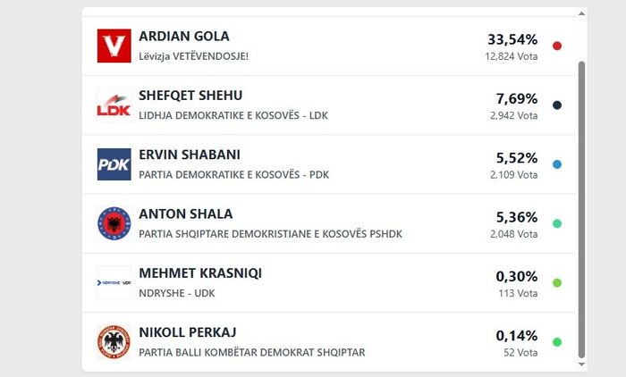 Sipas rezultateve të publikuara nga Komisioni Qendror i Zgjedhjeve (KQZ), Nikollë Perkaj ka marrë 52 vota në këto zgjedhje.