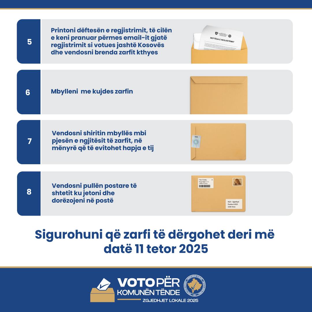 “Plotësoni fletëvotimet sipas udhëzuesit dhe dërgoni zarfin deri më 11 tetor 2025”, thuhet në njoftim.