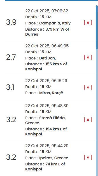Ndërkohë, në jug, në Konispol, janë regjistruar 3 lëkundje sizmike.