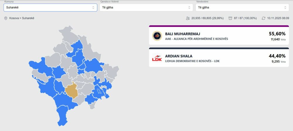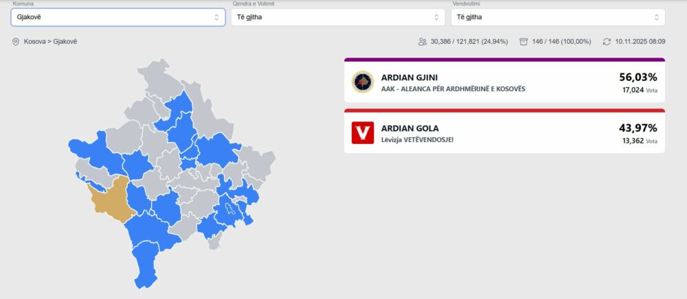 Por, si duket tash harta e Kosovës me partitë të cilat kanë fituar.