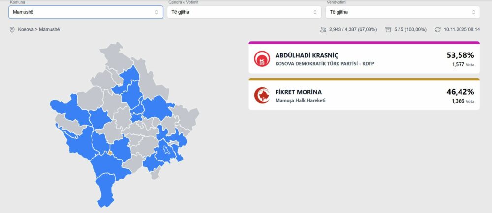 Kurse, Lista Serbe ka 10 komuna të fituara.