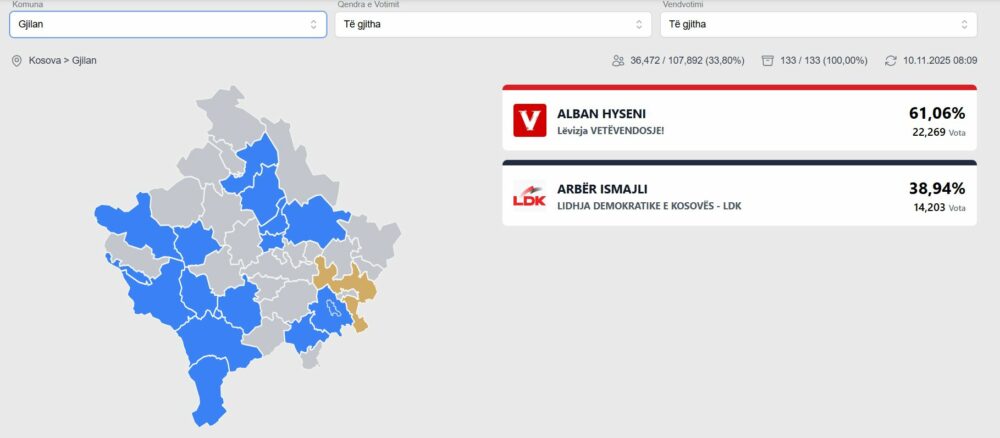 Vetëvendosje tashmë është në pushtet në shtatë komuna: Shtime, Fushë Kosovë, Kamenië, Gjilan, Obiliq, Podujevë dhe Mitrovicë.