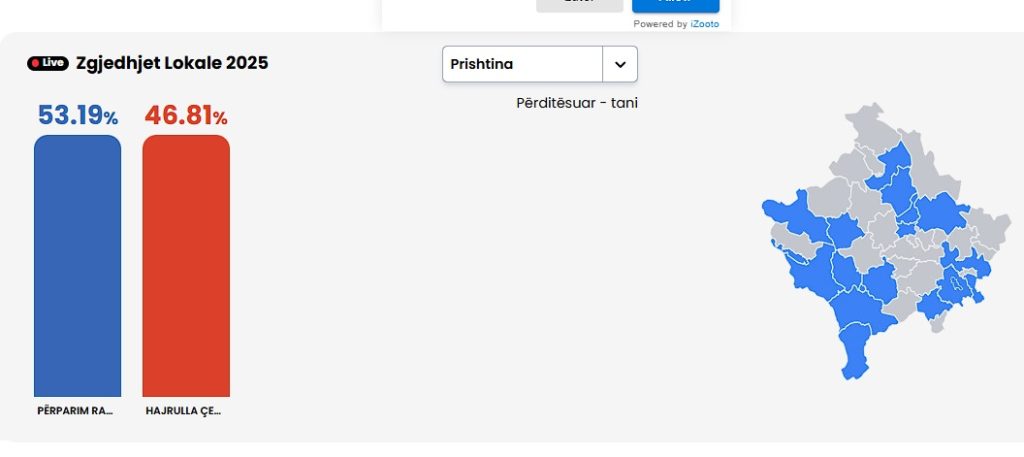 AktualeNis numërimi i votave në 18 komuna: Ja ku mund t’i përcillni në kohë reale (LINKU) Posted on 09/11/202509/11/2025 by Botapress.info Publikimi i votave në 18 komunat që kanë shkuar në balotazh ka nisur. Rubrika për numërim është hapur në uebfaqen e KQZ-së. Në këtë link mund t’i ndiqni në kohë reale., KLIKO KQZ