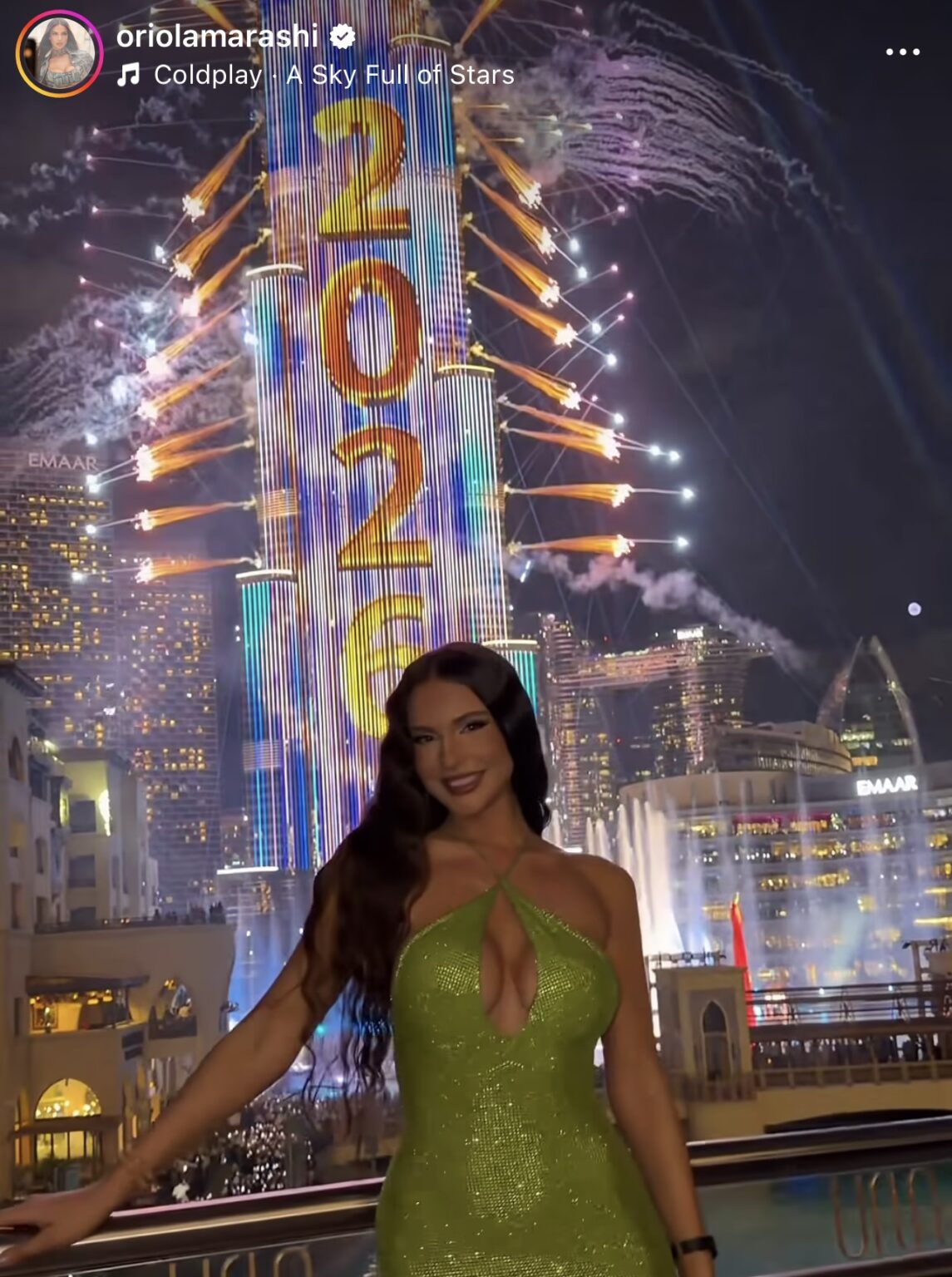 Modelja dhe influencerja e njohur shqiptare, Oriola Marashi, ka tërhequr vëmendjen e rrjeteve sociale me një postim spektakolar nga Dubai, ku ka festuar ndërrimin e viteve nën fishekzjarrët madhështorë të Burj Khalifa.