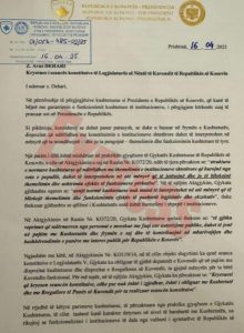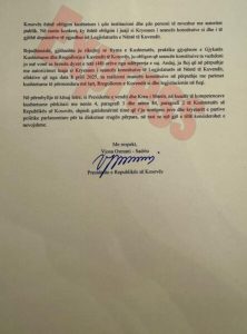 Në këtë letër, Osmani thotë se Kushtetuta i detyron të jetësojnë e jo të bllokojnë procese.