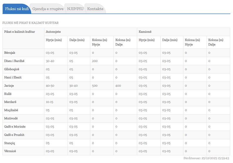 Pritjet më të gjata janë në Jarinjë deri në 40-50 minuta në hyrje dhe 30-40 minuta në dalje, sipas përditësimit të fundit të Qendrës Kombëtare për Menaxhim Kufitar.