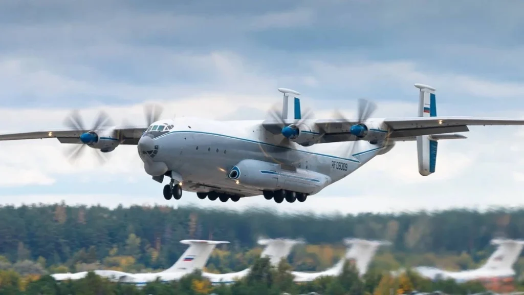 Aeroplani, që besohet se i përket Ministrisë së Mbrojtjes, An-22 është fluturakja më e madhe me turbohelikë.