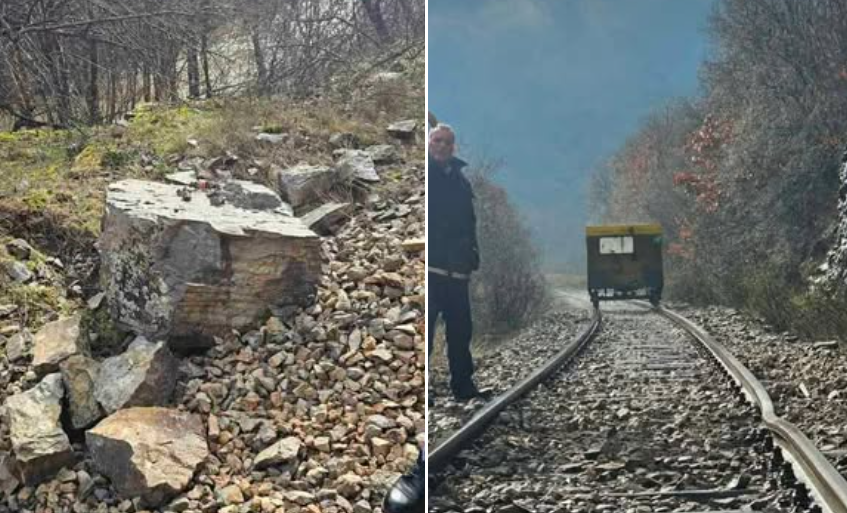 Binari hekurudhor në rrugën Klinë-Prishtinë është dëmtuar nga një shembje e gurëve.