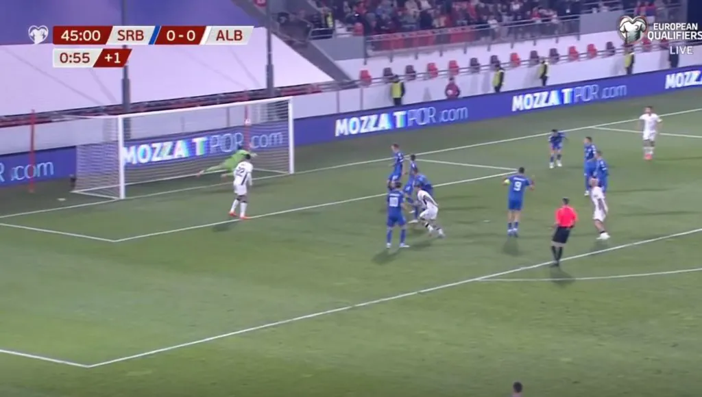 5’ Ka përfunduar pjesa e parë në Leskovc ku Shqipëria po avancon falë golit të shënuar nga Rey Manaj në minutën e 46-të të shtesës.