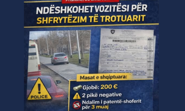 Ai është gjobitur me 200 euro, 2 pikë negative dhe masë mbrojtëse për 3 muaj.