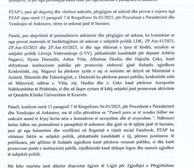 LDK është ankuar në PZAP që disa kandidatë të LVV-së, kanë përdorur resurset e shtetit për të bërë fushatë.